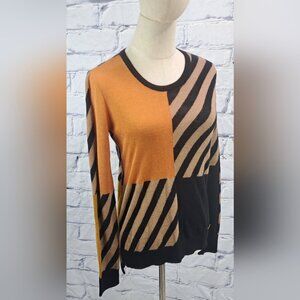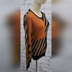 Burberry Brit Women's Sweater Wool Alpaca Striped Colorblock Camel Knight Small