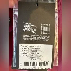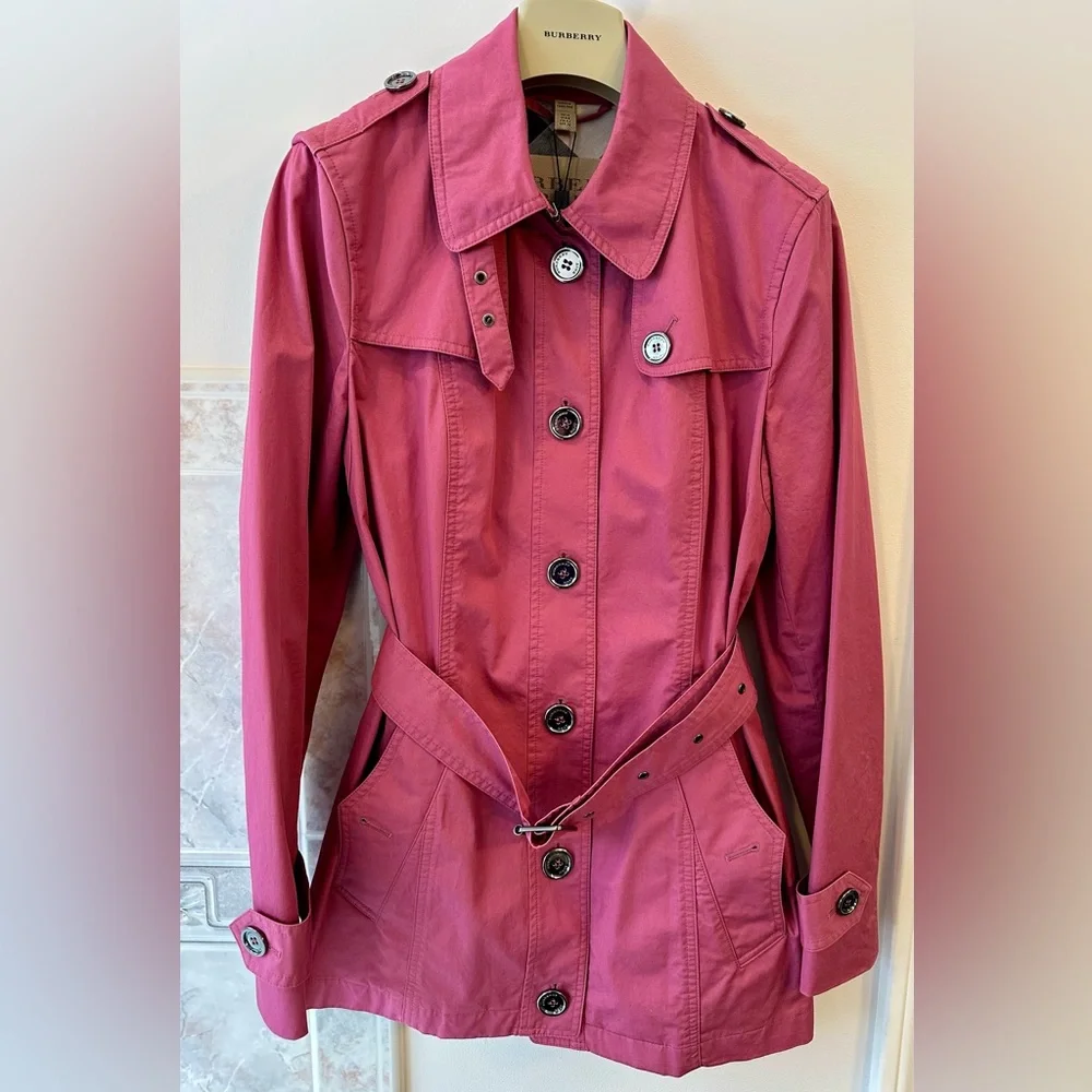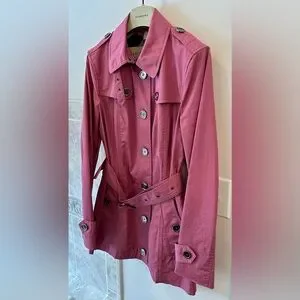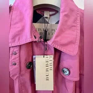 GEORGEOUS Burberry Brit women’s Blakely Trench Coat. BRAND NEW with tags and in original dust bag with hanger. Beautiful Foxglove color; a gorgeous rose color just in time for spring. Coat is cotton poplin with button front and iconic Burberry styling and details including epaulettes, gun flaps, hook and buckle tab stand collar closure, button tab cuffs and adjustable waist belt. Signature silver tone Burberry buttons and belt buckle. Iconic Burberry check lines the top back of the coat. Rear kick pleat. US size 8. Measurements: 18” across the front armpit seam to armpit seam, 16” across the top rear of the shoulders, 24” sleeve length and 28” shoulder to hem. Coat was purchased directly from Burberry and has been stored away from heat and light in original dust bag. Original price: $695. If you love classic Burberry styles, then do not hesitate to add this beautiful trench coat to your wardrobe at a fraction of the original price. From a smoke free home.