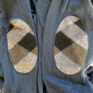 Burberry Brit Women’s Wool Quarter Zip Sweater Blue Argyle Plaid Elbow Patch L