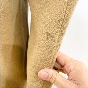 NOTE: Expected normal wear of coats. Please see condition of this coat before purchase. Some balding spots on edges, minor mark on elbow, unstitched leather loop. (All pictured)