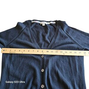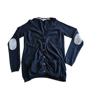 Burberry Brit womens Sz L black cashmere blend faded elbow patch cardigan sweater