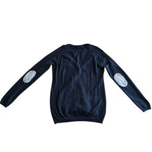 Burberry Brit womens Sz L black cashmere blend faded elbow patch cardigan sweate