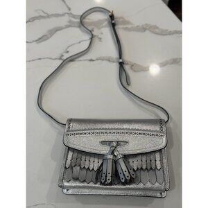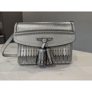 Burberry Broguing Tassel Macken Crossbody in Silver Metallic Grainy Calfskin
