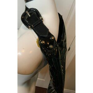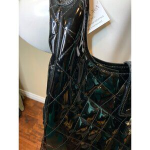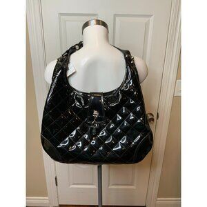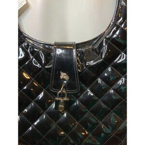 Burberry Brooke Padlock Black Quilted Patent Leather Hobo Handbag Purse