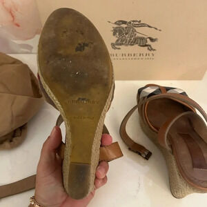 Burberry Brown Leather and Novacheck Canvas Espedrille Wedge Sandals