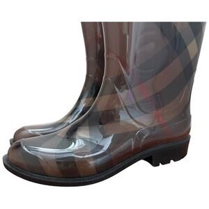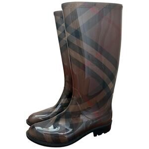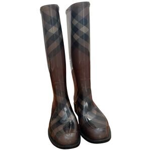 Burberry Brown Nova Check Rain Boots Waterproof Rubber Women's Size 38