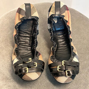 Burberry Brown Novacheck Canvas and Leather Buckle Ballet Flats Size 38