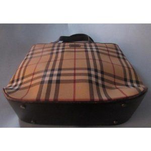 Burberry Brown Red White Black Nova Check Plaid Print Canvas Leather