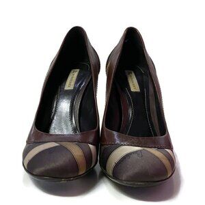 Burberry Brown Silk w/Leather Trim Round Toe Pumps
