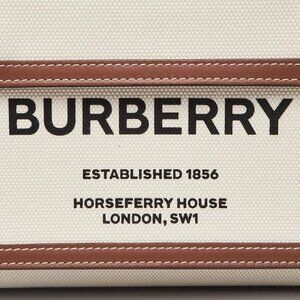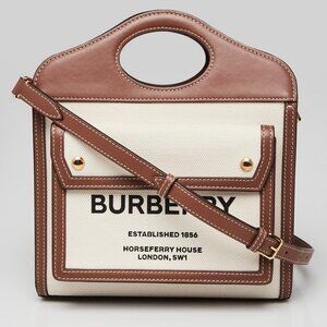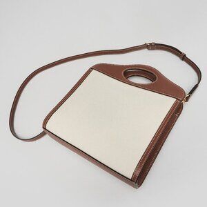 Burberry Brown/White Leather/Canvas Topstitch Pocket Mini Tote Bag