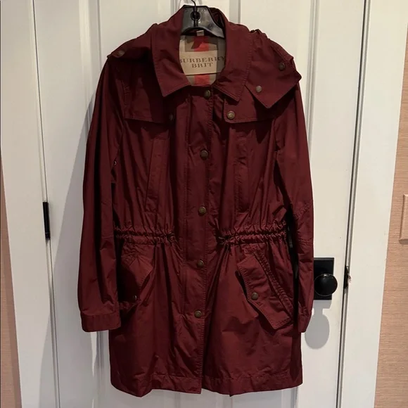 Burberry Burgundy Hooded Trench Coat