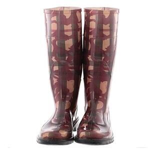 Burberry Burgundy Tan Graffiti Heart Talk Rain Boots EU38 US 7.5-8