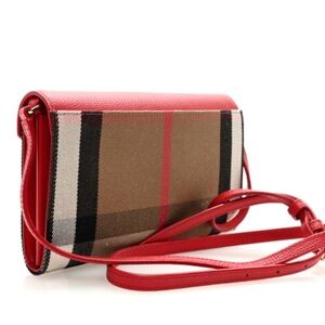Burberry Calfskin House Check Hannah Wallet with Detachable Strap in Bright Red