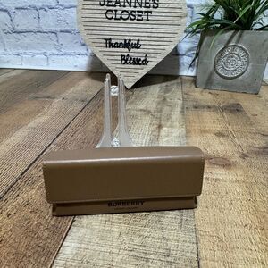 Burberry Camel Brown Slim Triangle Soft Leather Eyeglasses Case w/ Box Cloth