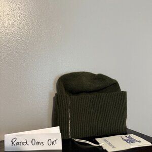 beanie, cashmere, mid-weight knit, solid color, brand logo, dry clean, do not bleach, do not tumble dry