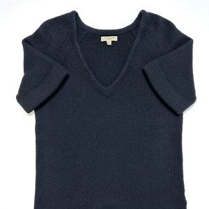 Burberry Cashmere Short Sleeve Knit V Neck Sweater Black Size L