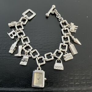 Burberry Charm Bracelet Watch Women Sterling Silver BU5200 Needs Battery