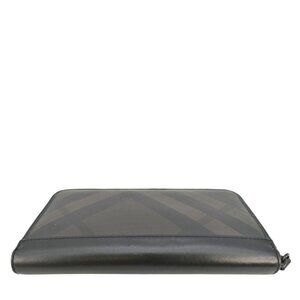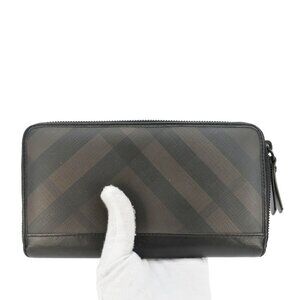 Burberry Check Canvas Zip Around Wallet Grey