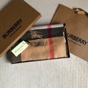 Brand new Burberry wool-silk blend scarf in archive beige. Features the iconic Burberry check pattern. Made in Italy. 100% authentic, never used. Includes original box.