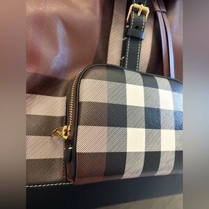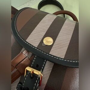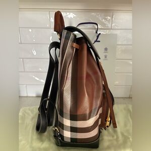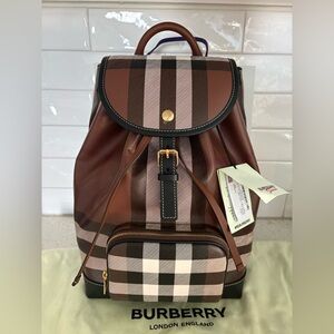 Stylish and functional, this Burberry backpack features a classic brown checkered design. Perfect for everyday use, it combines elegance with practicality.