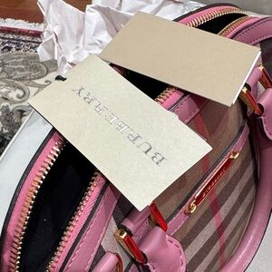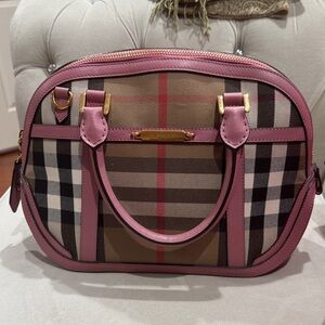Elegant Burberry check sartorial small orchard bowling. Features pink leather accents. Ideal for a sophisticated look. Brand new, hardly used couple of times.