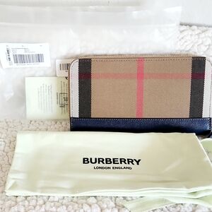 Stylish Burberry wallet with iconic checkered pattern. Features a zip-around closure.