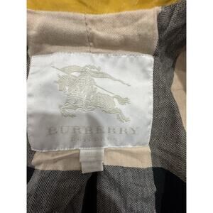 Make a statement with this trendy Burberry jacket! The vibrant mustard yellow color and chic design will turn heads wherever you go. Inside reveals a classic Nova Check lining, adding a touch of iconic Burberry style. Perfect for birthday parties or casual outings, this jacket will keep your little one looking fashionable.