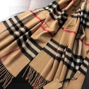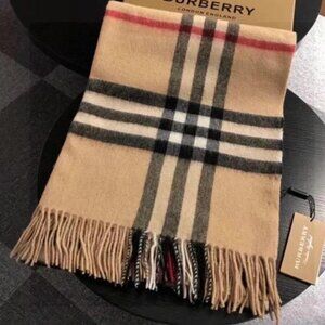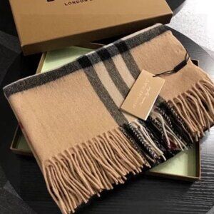 Authentic Burberry scarf in iconic black and tan check pattern. Made from 100% cashmere for ultimate softness and warmth. Comes with original Burberry box and packaging.