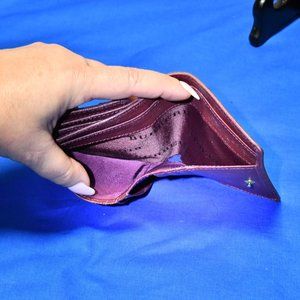 Classic Burberry compact wallet. Vintage Nova Check (burgandy leather). This item is pre-owned but in good condition. If you are looking for a new wallet, this is not it! Only those of us who appreciate vintage items will appreciate this wallet.