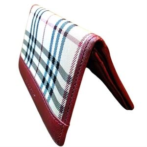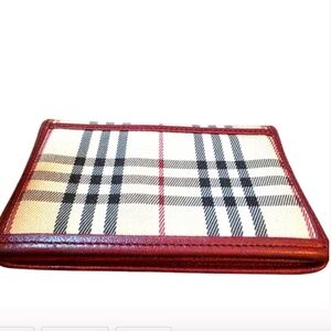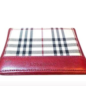 Burberry Classic Plaid Burgundy Leather Trim Cardholder Wallet Bifold NovaCheck