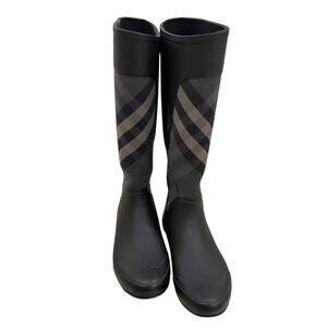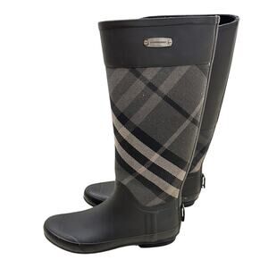 Burberry Clemence Classic Signature Check Rain Boots gray black FLAWED size 38