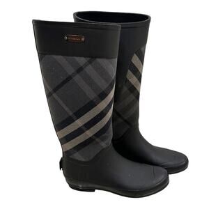 Authentic Burberry Clemence Signature Check Rain Knee Boots size 38. *FLAWED, see photos and read description below