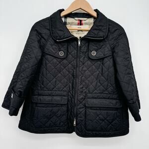 Burberry Coat Black Sz M Quilted Puffer Winter Plaid Jacket Check Brit Light