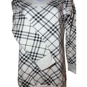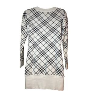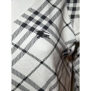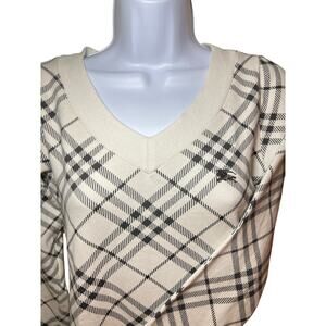 Burberry Cotton Tunic Cream Gray Nova Check Size 38 Designer Knit Top Vee Neck