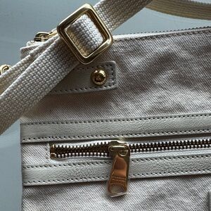Elegant cream crossbody bag with gold hardware. Ideal for daily wear.