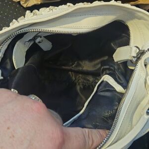 Chic Burberry shoulder bag with ruffled texture. Cream color adds elegance. Perfect for any occasion.