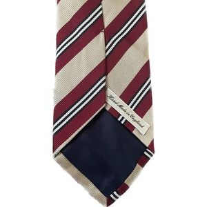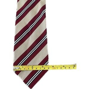 Burberry Crimson Gold Striped Handmade Silk England Neck tie.