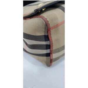 Exterior shows used, washable stains, canvas fabric fades, scuffs on strap, minimal scratches on hardwares, roughness on corner edges. H:5, L:7, W:3