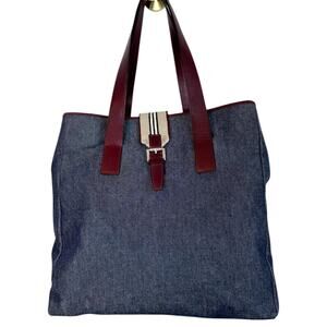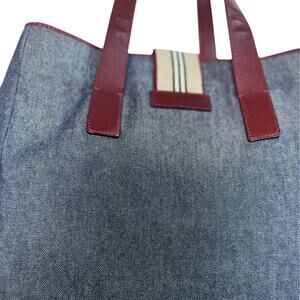 Burberry Dark Rinse Denim and Burgundy Leather Large Tote