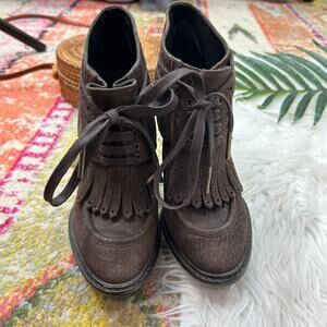 Burberry Designer Brown Preppy Leather Heeled Ankle Boots Booties 36.5 / 6.5