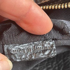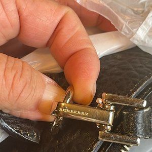 This opens to a black logo fabric interior with zipper and patch pockets for everyday wear from Burberry!