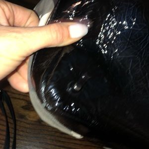Great condition. Patent leather with nylon check design in black white and gray. Some wear to the bottom corners as pictured. Comes with a changing pad. Includes dustbag no box. Not eligible for bundle discount.