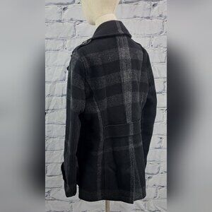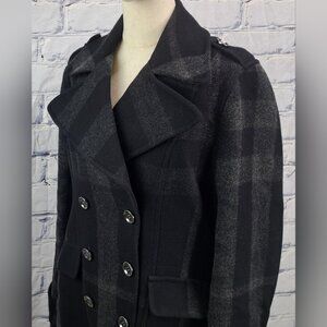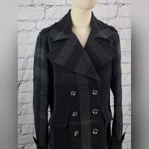 Burberry Double Breasted Pea Coat Winter Jacket Wool Check Plaid Plus Sz 14 US