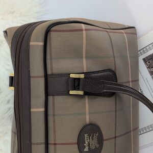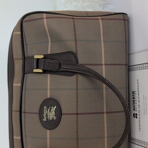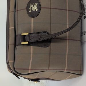 Very beautiful Burberry duffle bag in very good condition ! . Inside very clean . Outside a scuff on bottom . Also a small tear that is hardly noticeable in person . Otherwise she is very pretty with hardly any wear .
