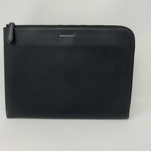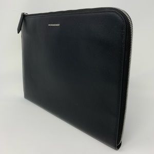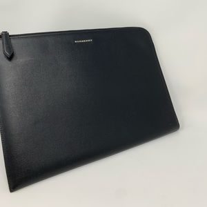 Burberry Embossed Leather Zip Around Leather Envelope Pouch for Men