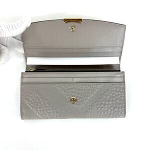 Burberry Embossed Nova Check Grain Porter Continental Grey Wallet NEW Envelope