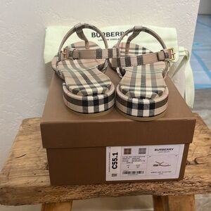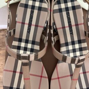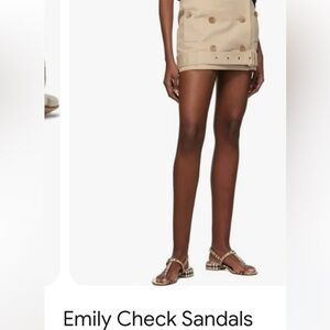 Emily Check, Archive Beige Sandals. Purchased the last pair at Burberry. Adorable sandals paired with denim to skirts. Especially cute with jeans and a black tank top for a sophisticated look! These sandals were worn once as they are slightly small for me. The uppers look brand new! Very little scuffing on bottoms