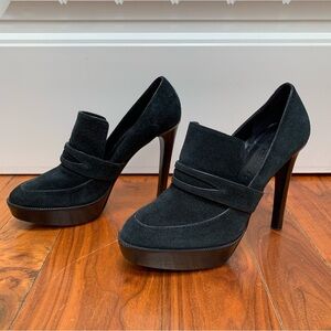 Burberry English Heritage Ryfold Platform Pumps Black Suede 38.5