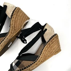Burberry Espadrille Black Tan Brown Check Logo Tartan Plaid Print Wedge size 40