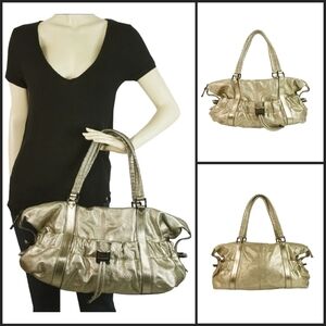 Burberry Farrar Metallic Gold Leather Large Drawstring Shoulder Bag